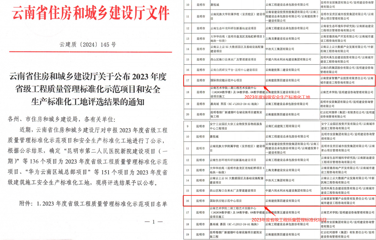 近日,云南省住房和城鄉(xiāng)建設(shè)廳公布了2023年度省級(jí)工程質(zhì)量管理標(biāo)準(zhǔn)化項(xiàng)目和安全生產(chǎn)標(biāo)準(zhǔn)化工地評(píng)選結(jié)果,昆明經(jīng)投集團(tuán)旗下云南營(yíng)家智慧產(chǎn)業(yè)投資有限責(zé)任公司(以下簡(jiǎn)稱“營(yíng)家產(chǎn)投公司”)負(fù)責(zé)建設(shè)的國(guó)際供應(yīng)鏈?zhǔn)痉吨行捻?xiàng)目(以下簡(jiǎn)稱“項(xiàng)目”)被評(píng)為2023年度省級(jí)工程質(zhì)量管理標(biāo)準(zhǔn)化示范項(xiàng)目和安全生產(chǎn)標(biāo)準(zhǔn)化工地。